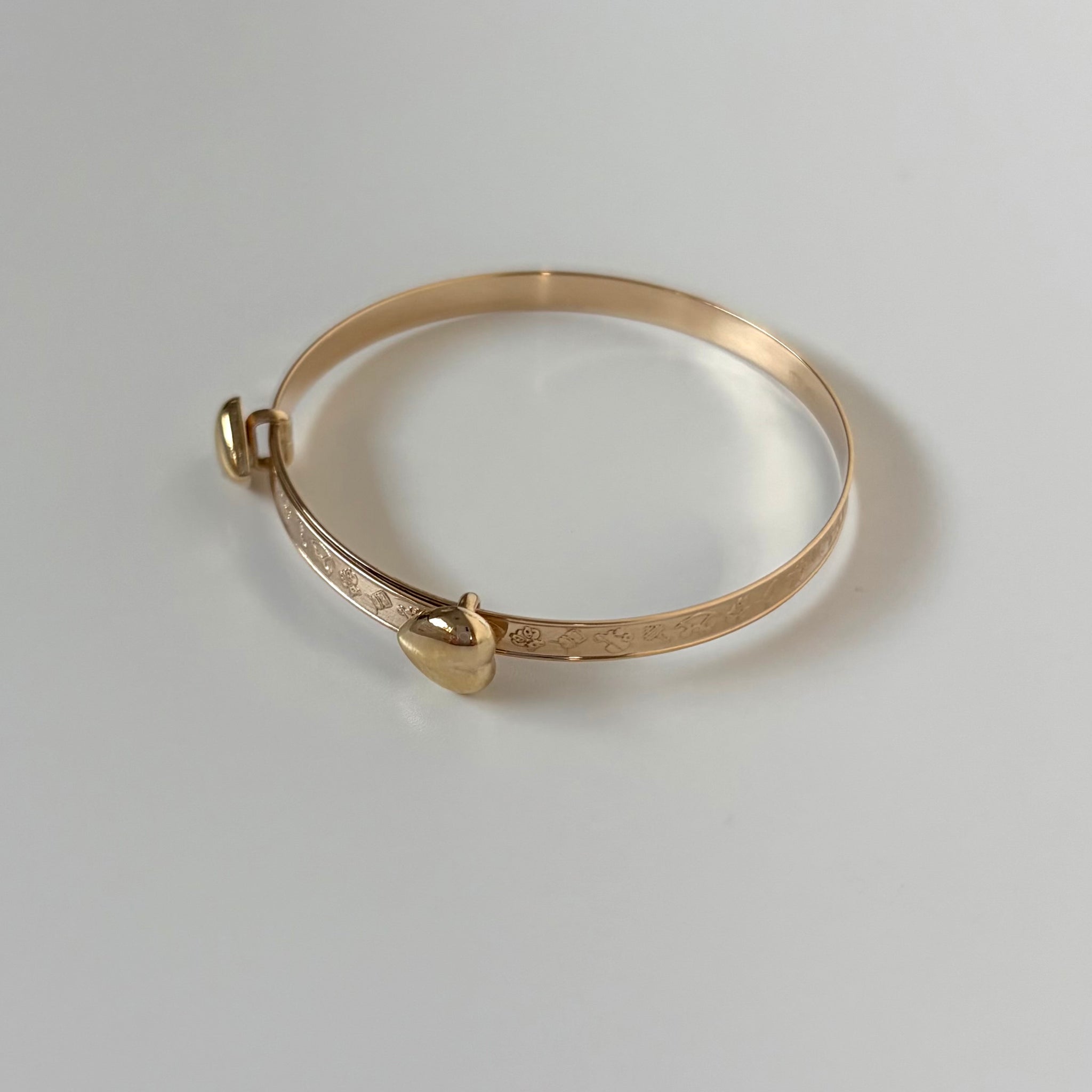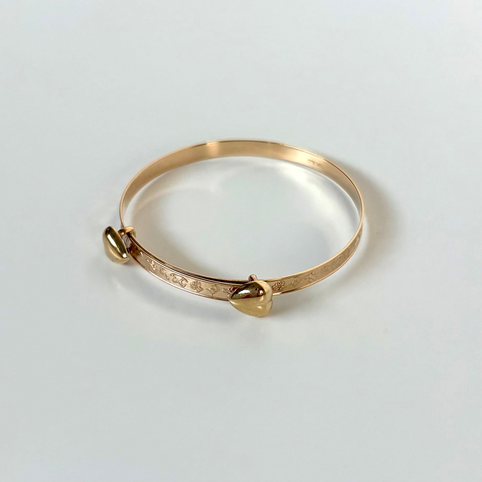 Crafted in 10k gold, this bangle bracelet celebrates your little one with charming heart details and thoughtful nursery motifs. The adjustable slide closure ensures a secure yet comfortable fit for growing wrists, while the timeless design transforms it into a treasured heirloom. Perfect for milestone moments—births, baptisms, or meaningful gifts from loved ones.