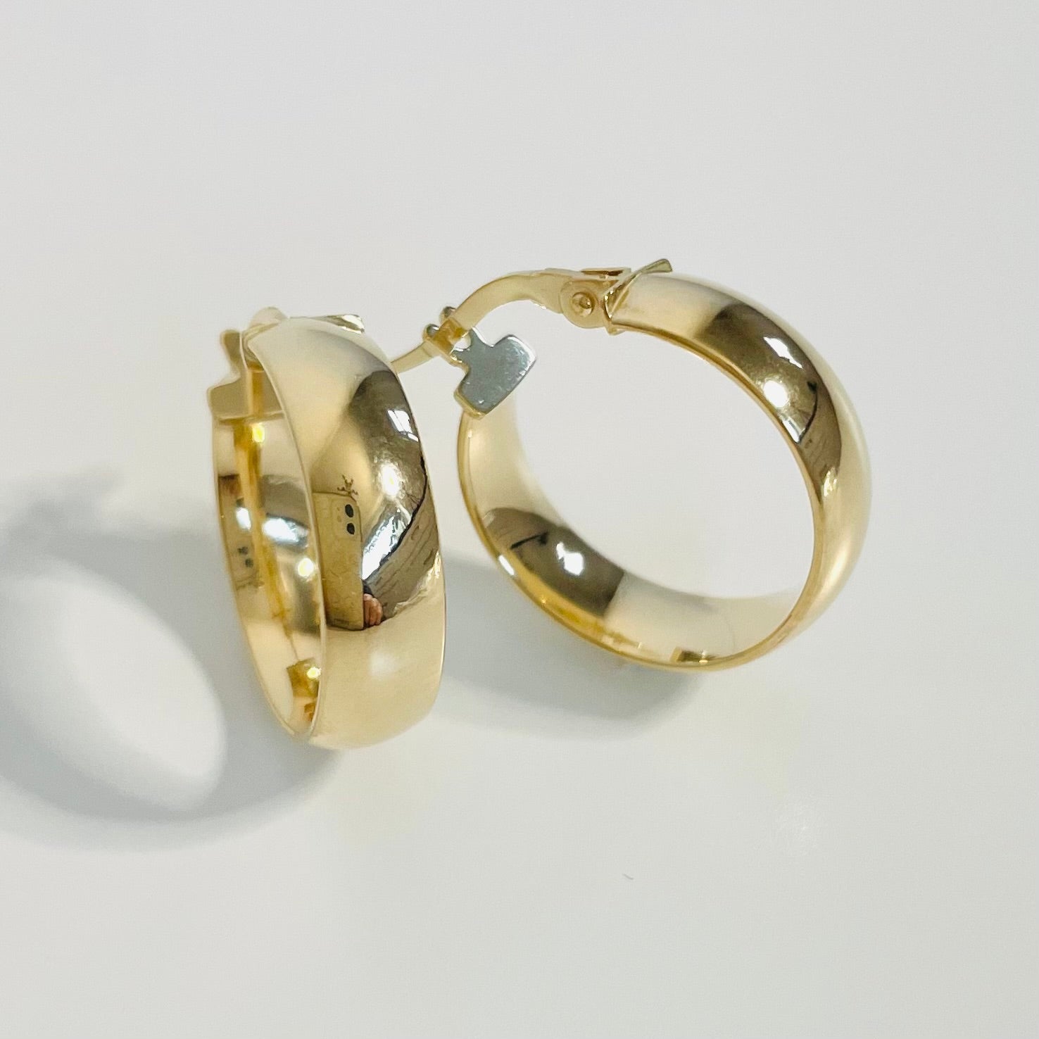 Crafted from 10-karat gold with a refined high-polish finish, these Italian-made hoops showcase timeless elegance. The 18mm diameter and 5mm width create a balanced, wearable silhouette that complements both everyday styling and special occasions. A versatile essential for any fine jewelry collection.
